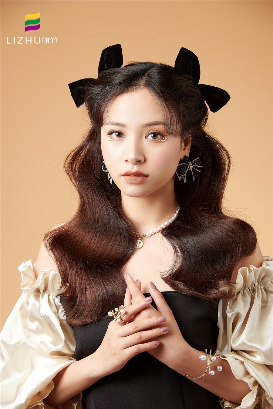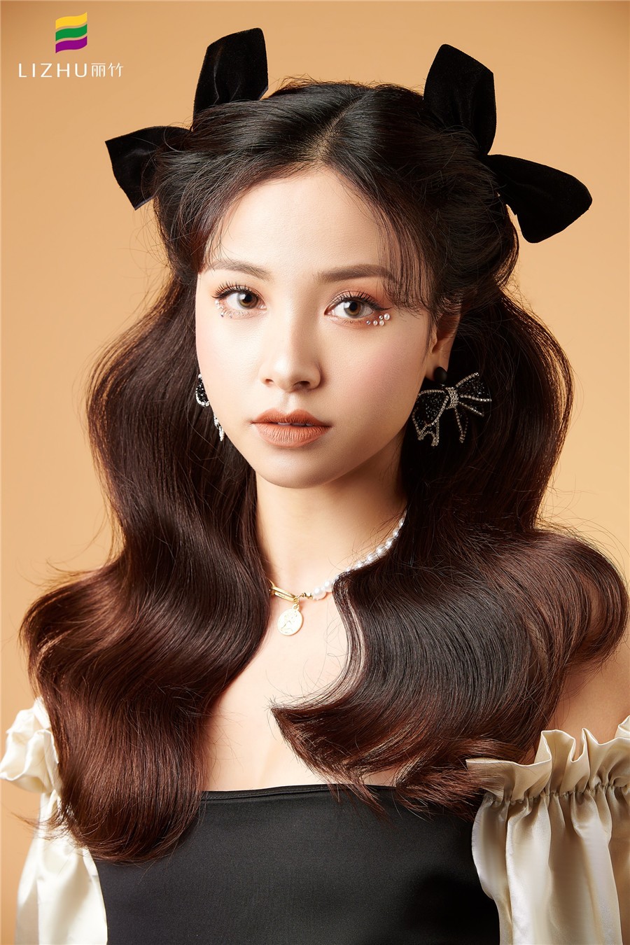 蝴蝶結(jié)發(fā)飾搭配紋理披發(fā)