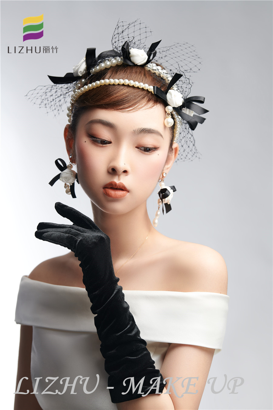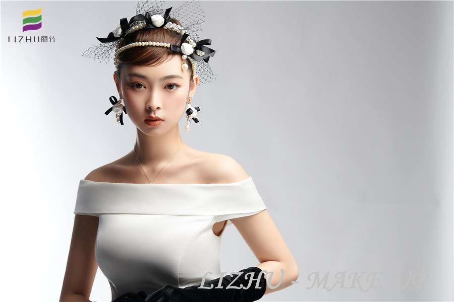 南寧彩妝美妝培訓(xùn)學(xué)校(麗竹彩妝學(xué)校)、南寧美妝培訓(xùn)機(jī)構(gòu)---簡約優(yōu)雅名媛造型:自然干凈的妝面打造輕薄裸妝感,簡約盤發(fā)佩戴網(wǎng)紗珍珠花朵頭飾,潔白無暇花朵耳飾清新亮眼,搭配白色綢緞面料半肩禮服,優(yōu)雅之中又不失少女的甜美??戳诉@些作品,想知道南寧有實(shí)力的化妝培訓(xùn)班,歡迎到麗竹彩妝學(xué)校了解課程。