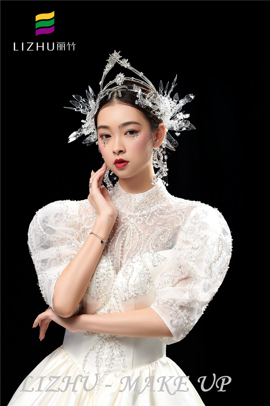 南寧彩妝師培訓(xùn)學(xué)校、南寧化妝學(xué)校短期培訓(xùn)班作品---輕奢鉆石新娘造型:,輕薄自然的底妝打造,亮片碎鉆點(diǎn)綴眼妝周邊,打造閃閃亮亮的奢華感,奢華水晶頭飾與重工禮服相呼應(yīng),好一個(gè)高奢精致美人。要問南寧哪家化妝學(xué)校比較熱門,請(qǐng)到南寧化妝彩妝培訓(xùn)學(xué)校(麗竹彩妝學(xué)校)去參觀試聽吧!
