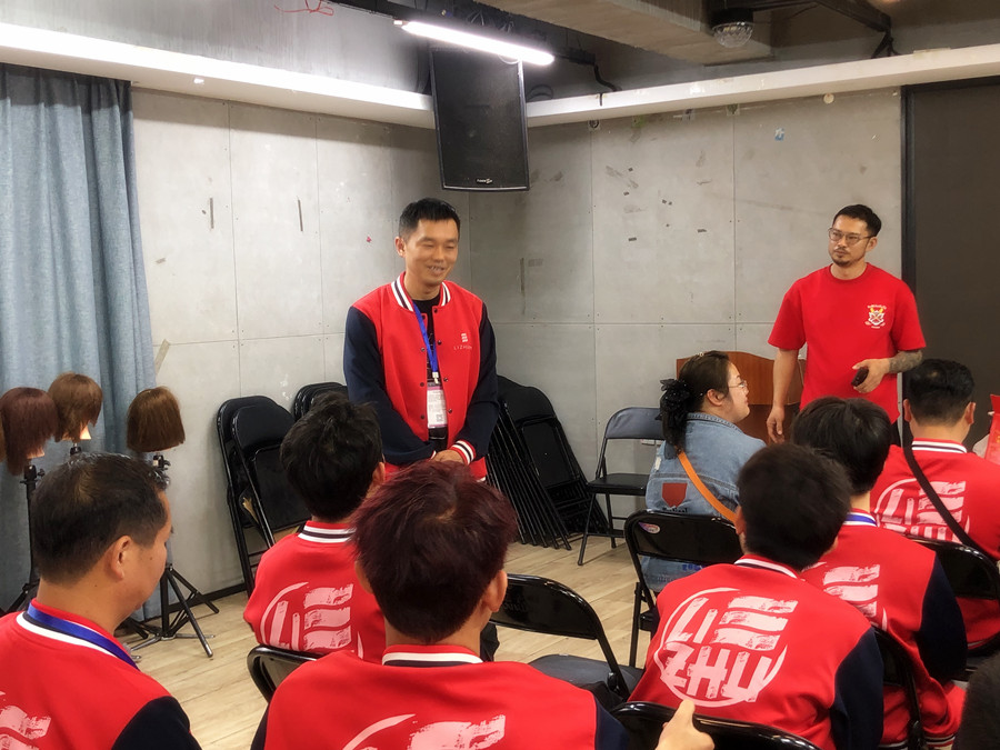 為了讓同學(xué)們提前感受美之浪對(duì)員工的培訓(xùn)標(biāo)準(zhǔn),以及美發(fā)師需要的形象儀態(tài)和接待話術(shù),國(guó)總現(xiàn)場(chǎng)組織同學(xué)們展開(kāi)了一場(chǎng)自我介紹的話術(shù)情景模擬。