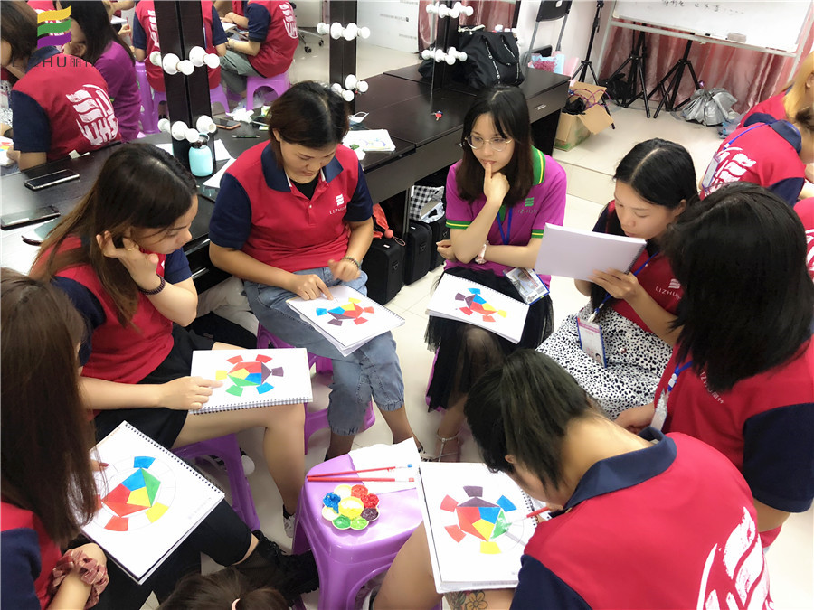 如果你認(rèn)為這只是簡單在相應(yīng)的空格里上色,那就錯(cuò)了。學(xué)過彩妝,美甲,美發(fā)的人都知道,色彩分有冷色系和暖色系,在學(xué)習(xí)色彩搭配的時(shí)候,學(xué)員必須要對(duì)這兩類色調(diào)的顏色分清,同時(shí)還要有能進(jìn)行冷暖色調(diào)進(jìn)行調(diào)配的能力。而同學(xué)們正在做的就是這個(gè)練習(xí)。