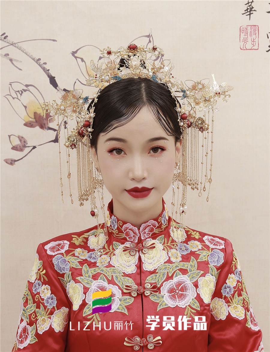 南寧化妝學(xué)校分享:雖然都是中式國風(fēng)的新娘造型,以秀禾為主要服飾,搭配極具中國紅特色的妝容,但仔細一看,還是會發(fā)現(xiàn)在秉承傳統(tǒng)東方魅力的同時,還夾著令人眼前一亮的潮流元素。