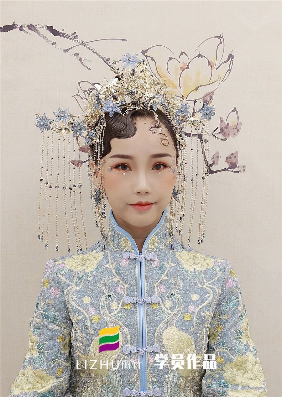 南寧化妝學(xué)校分享:裊娜少女羞,歲月無憂愁,中式新娘驚艷的一抹刺繡,精致典雅,演繹中國風(fēng),優(yōu)雅的盤發(fā)搭配精致的發(fā)飾,一身華服,正是芙蓉不及美人妝。