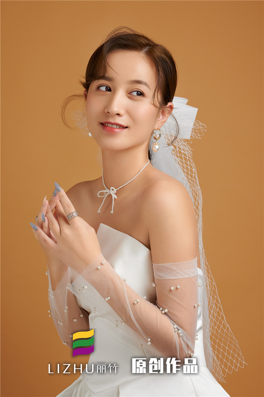 麗竹學校彩妝作品---簡約韓式新娘造型:自然輕薄的妝面似有似無,配上清新靈動的簡約盤發(fā),點綴潔白無暇的珍珠飾品,搭配白色綢緞面料的禮服,凸顯“人淡如菊”的氣質。