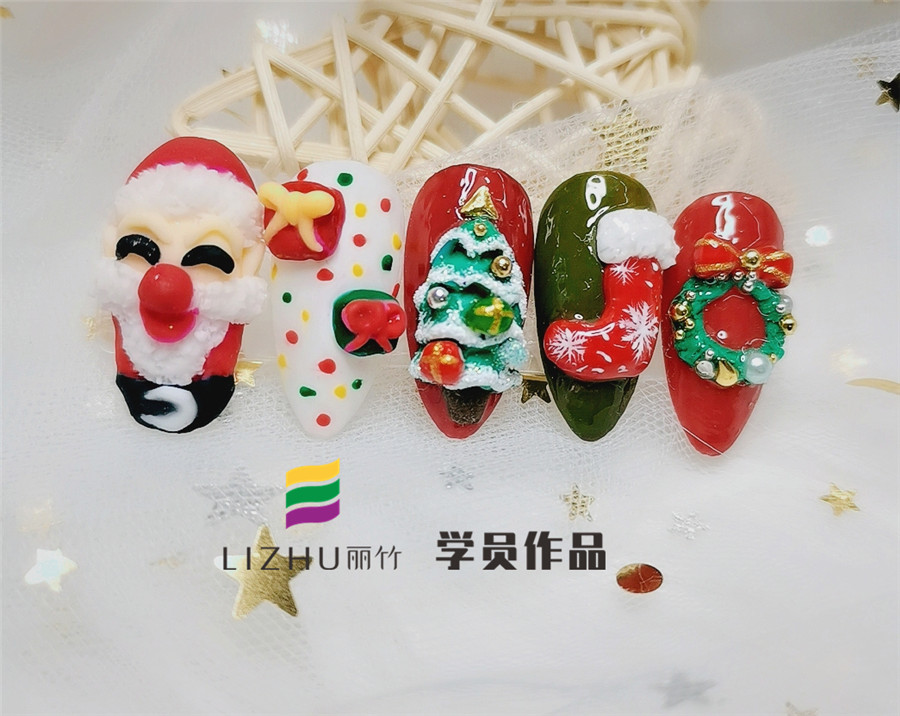 南寧美甲學(xué)校分享:綠色和紅色,雪花和襪子,老人和松樹(shù)……這些都是圣誕節(jié)到來(lái)的標(biāo)志!為了將這些充滿圣誕元素的物件和人物放在指甲上,廣西正規(guī)美甲培訓(xùn)學(xué)校(麗竹美甲學(xué)校)的學(xué)員們繪制了一些列的美甲作品,現(xiàn)在就來(lái)看看有沒(méi)有你喜歡的美甲款式吧!