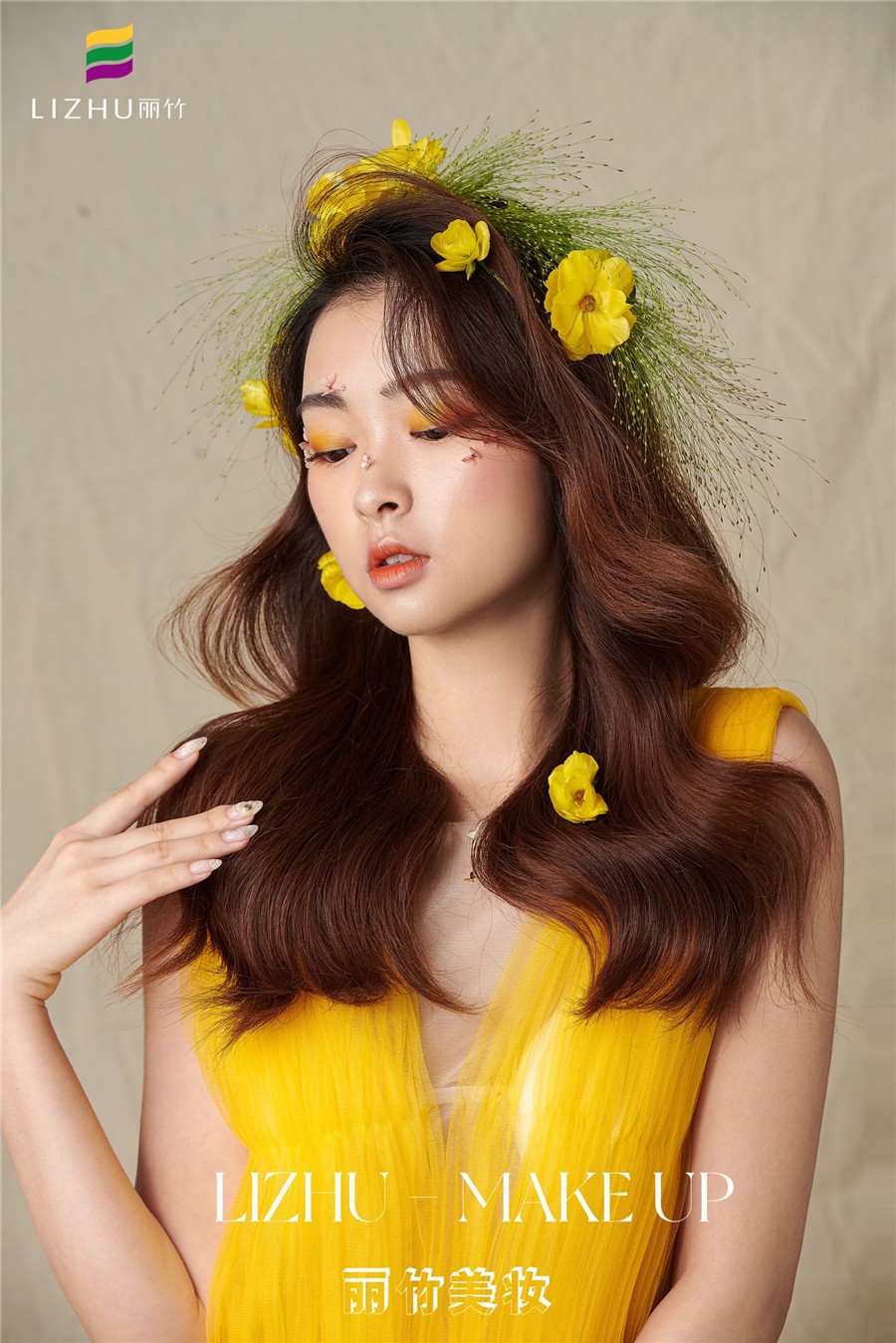 麗竹化妝學(xué)校作品:輕氧花漾披發(fā)造型
