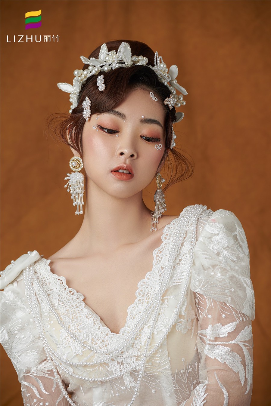 南寧化妝學(xué)校作品:輕奢復(fù)古珍珠妝容:復(fù)古簡潔優(yōu)雅的盤發(fā),佩戴少女俏皮的頭飾,純白珍珠搭配的精致,展示出萬種舊日風(fēng)情,使得微微一笑很傾城!