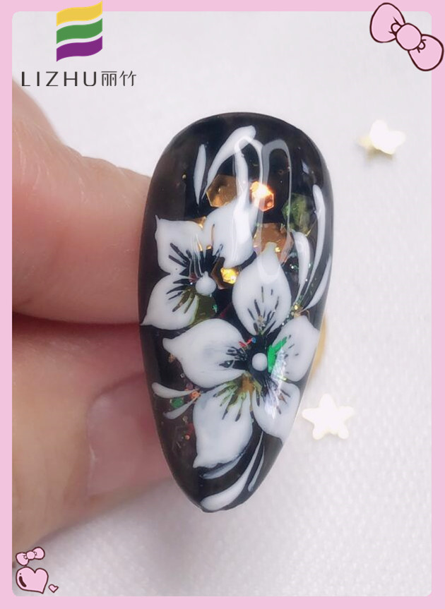 南寧美甲培訓班學員作品:彩繪花朵美甲