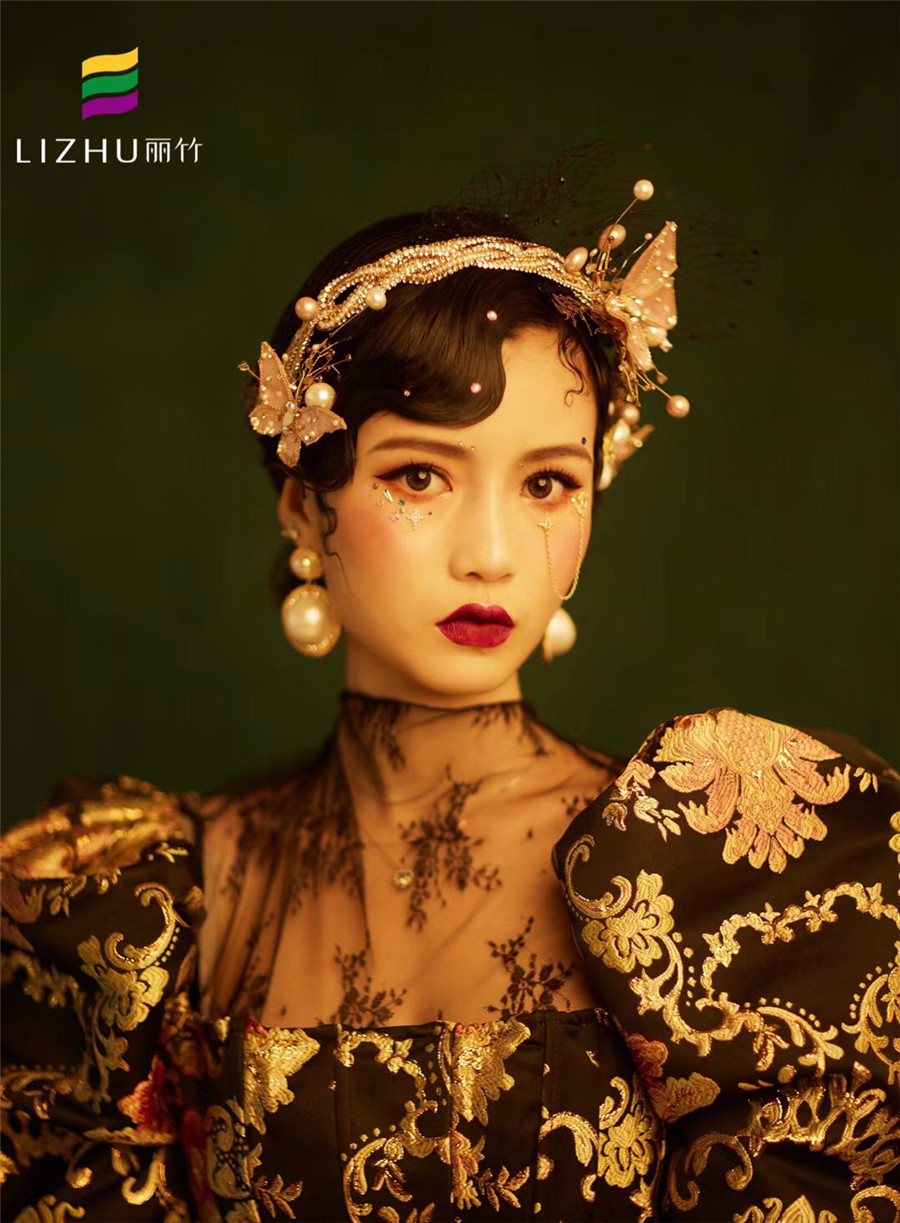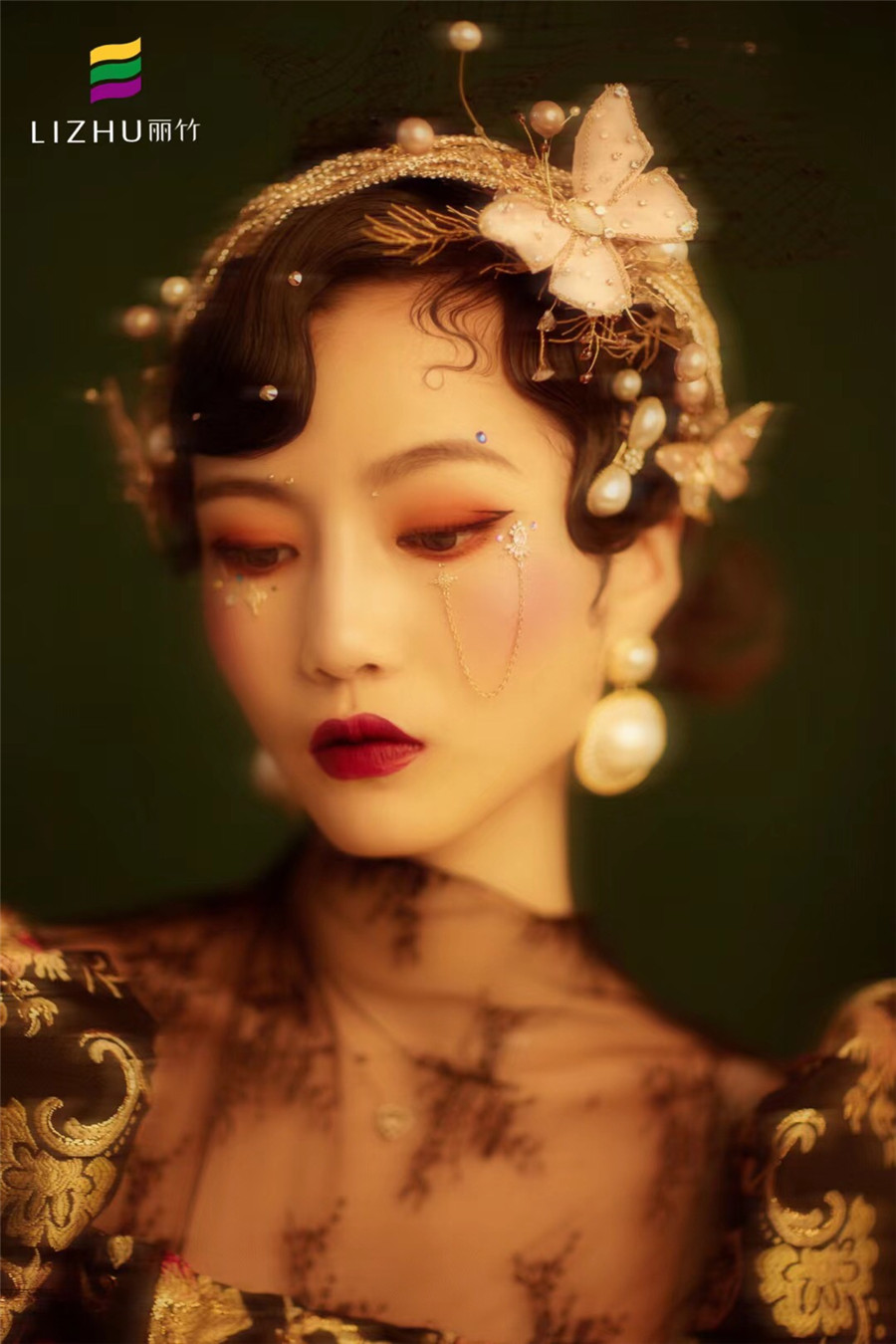 麗竹化妝學校作品---復古油畫妝容造型:復古韻味的手推波,奢華優(yōu)雅的珍珠配飾,畫龍點睛的眼周裝飾,打破沉悶,彰顯優(yōu)雅強調(diào),刻畫出一副復古名媛的油畫。