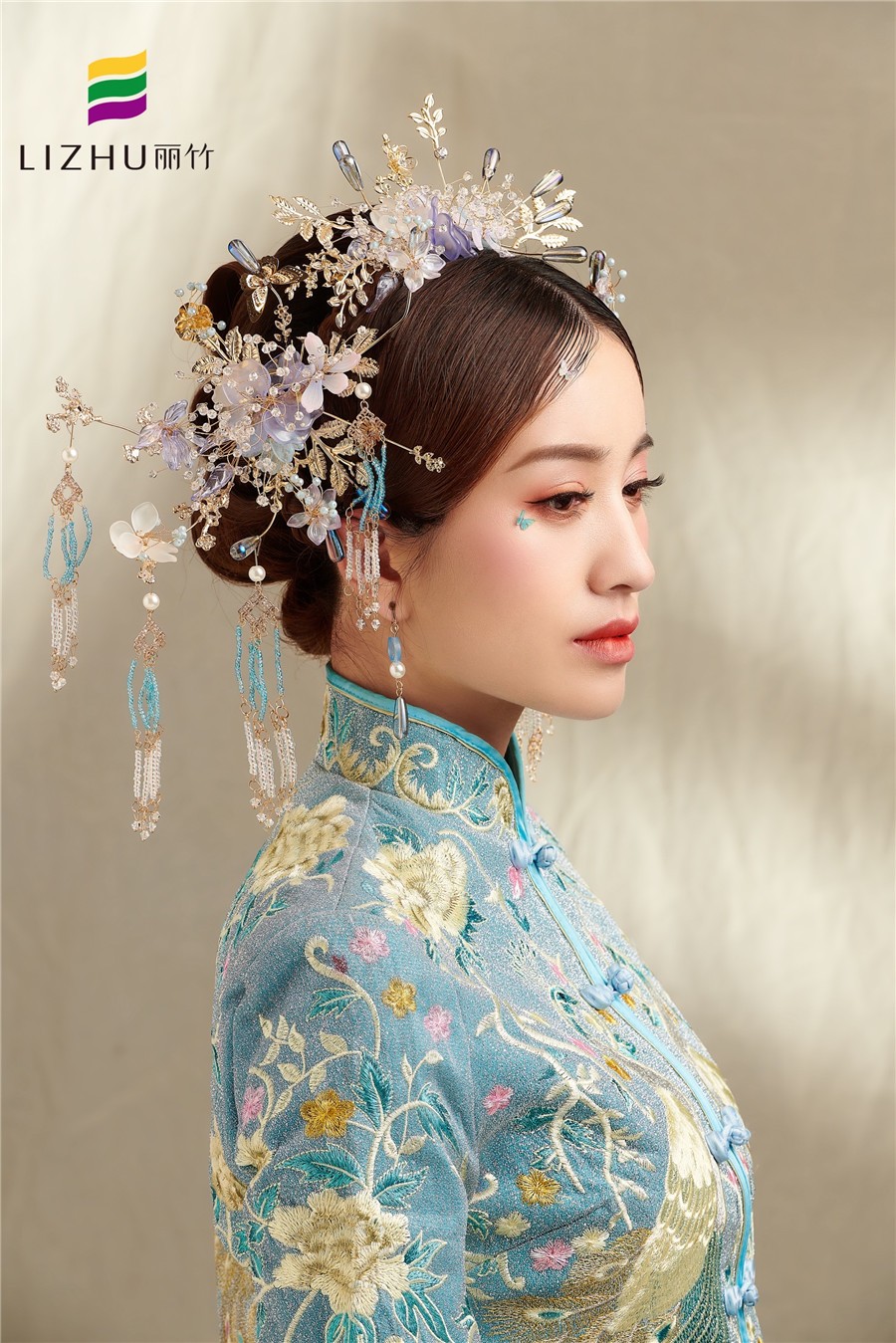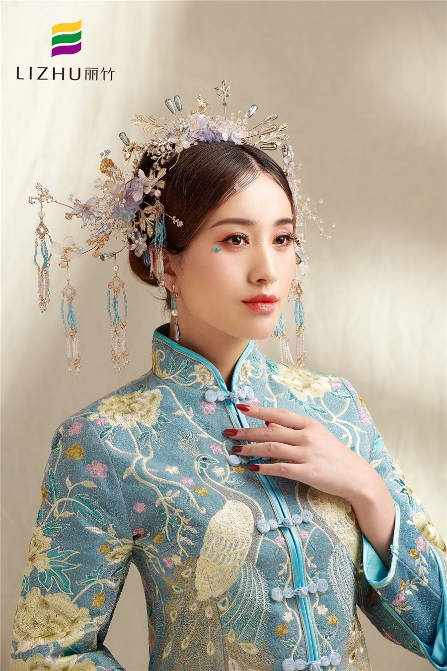麗竹學(xué)校彩妝作品---中國(guó)藍(lán)秀禾新娘造型:簡(jiǎn)潔優(yōu)雅的盤(pán)發(fā),配上秀麗柔美的妝容,滿眼柔情溢出眼角眉梢,極具優(yōu)雅端莊大方之余,更加顯得姿態(tài)婀娜多姿。