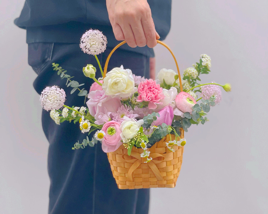 韓式手提花籃,南寧鮮花培訓(xùn)作品