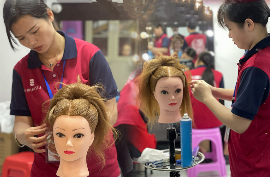 零基礎(chǔ)學(xué)彩妝發(fā)型、廣西化妝造型教學(xué):作為廣西專(zhuān)業(yè)化妝名校-廣西南寧彩妝造型學(xué)校(麗竹彩妝造型學(xué)校),更加注重學(xué)員對(duì)整體造型手法的熟練度。而經(jīng)典的復(fù)古高發(fā)髻,就是本節(jié)化妝發(fā)型培訓(xùn)課的重點(diǎn)課程內(nèi)容。如果你想在廣西學(xué)化妝發(fā)型,建議你可以撐著麗竹學(xué)校化妝專(zhuān)業(yè)正在進(jìn)行學(xué)費(fèi)優(yōu)惠報(bào)讀活動(dòng),關(guān)注我們了解更多課程詳情。