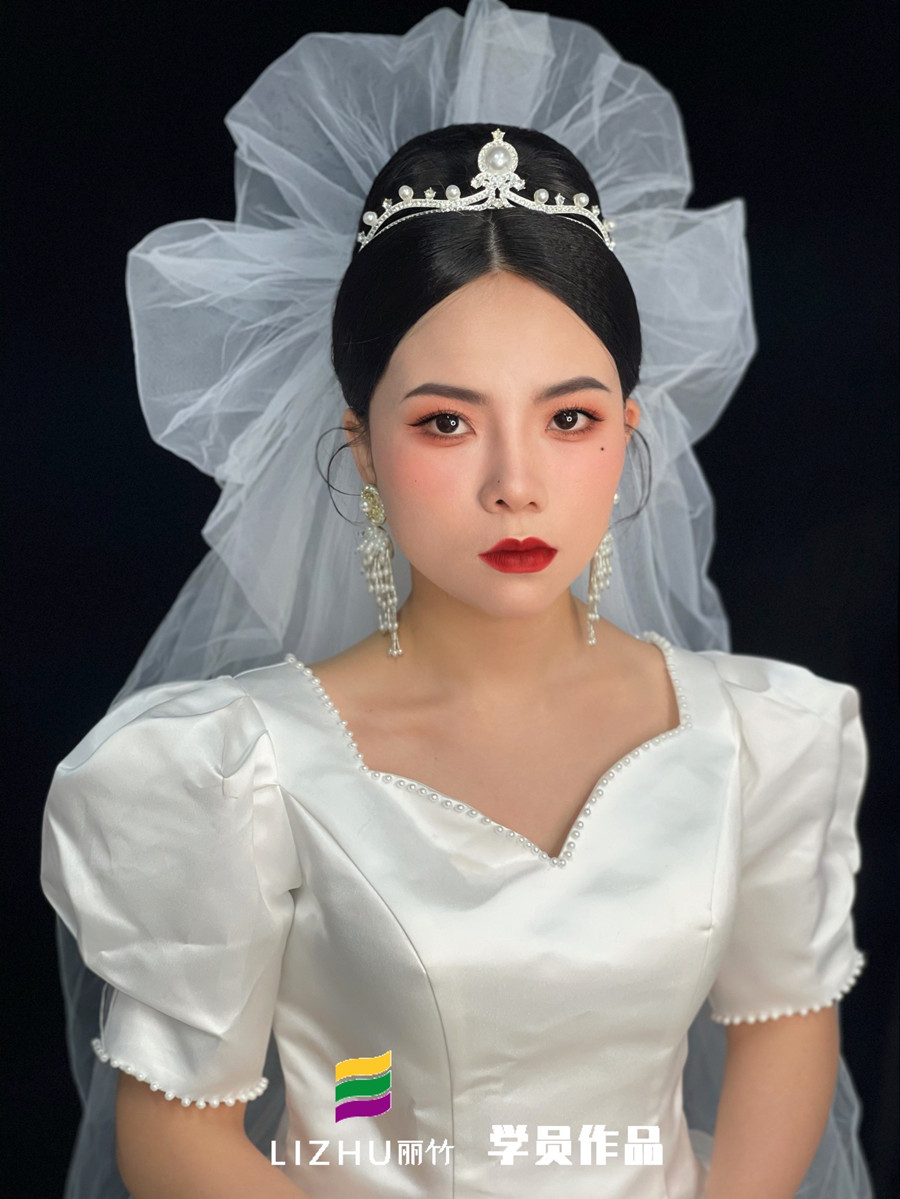 麗竹學(xué)校為期2個(gè)月的化妝培訓(xùn)現(xiàn)在已經(jīng)迎來(lái)畢業(yè)季,在這段時(shí)間里,學(xué)員們由零起步開(kāi)始學(xué)習(xí),直到現(xiàn)在已經(jīng)可以獨(dú)立完成整個(gè)妝容造型的打造。下面,就一起來(lái)看看南寧彩妝造型學(xué)校學(xué)員寧婉茜的畢業(yè)作品---蓬蓬頭紗新娘造型吧!