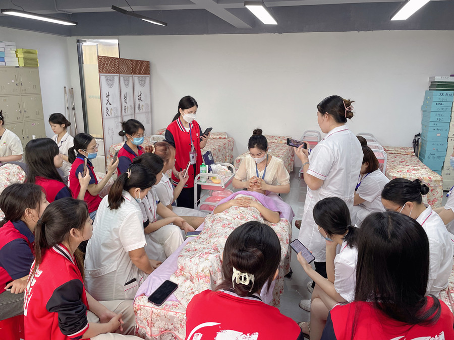 南寧美容培訓(xùn)班-老師面部護(hù)膚手法示范