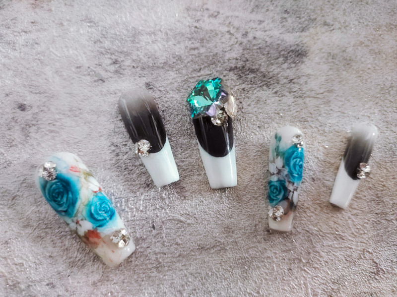 利用黑白進行作畫,常以水墨暈染居多,而這種繪畫方式同樣可以運用到美甲繪制當(dāng)中。