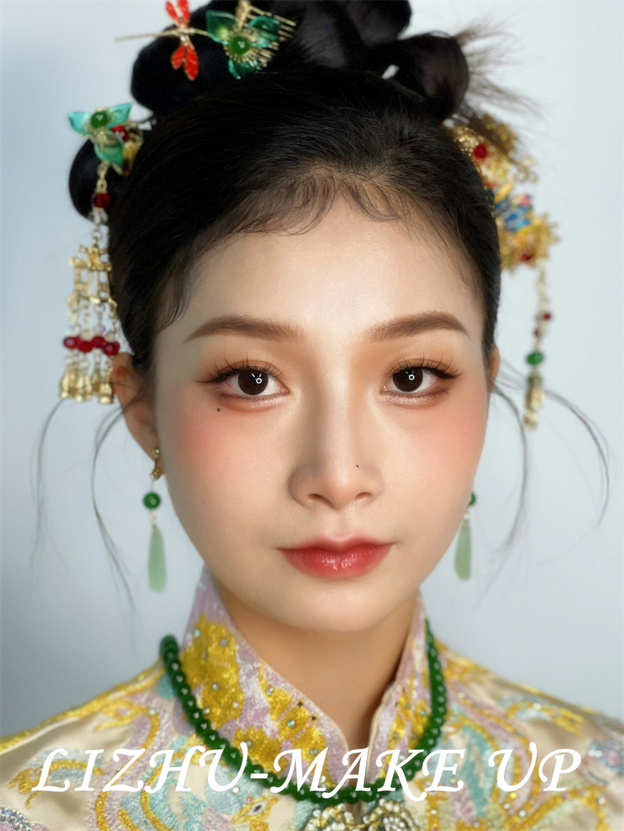 南寧培訓寫真造型作品、南寧化妝培訓新娘妝作品---中式新娘造型:溫柔清新的盤發(fā),精致珠釵點綴于兩鬢,眉若柳葉眼帶桃花,打造大家閨秀婉約的江南姿態(tài)。只要你熱愛化妝,都建議你到南寧化妝專業(yè)正規(guī)學校進行零基礎化妝培訓?,F(xiàn)在麗竹學校化妝專業(yè)正在進行學費特惠活動,預定活動末班車的席位吧!