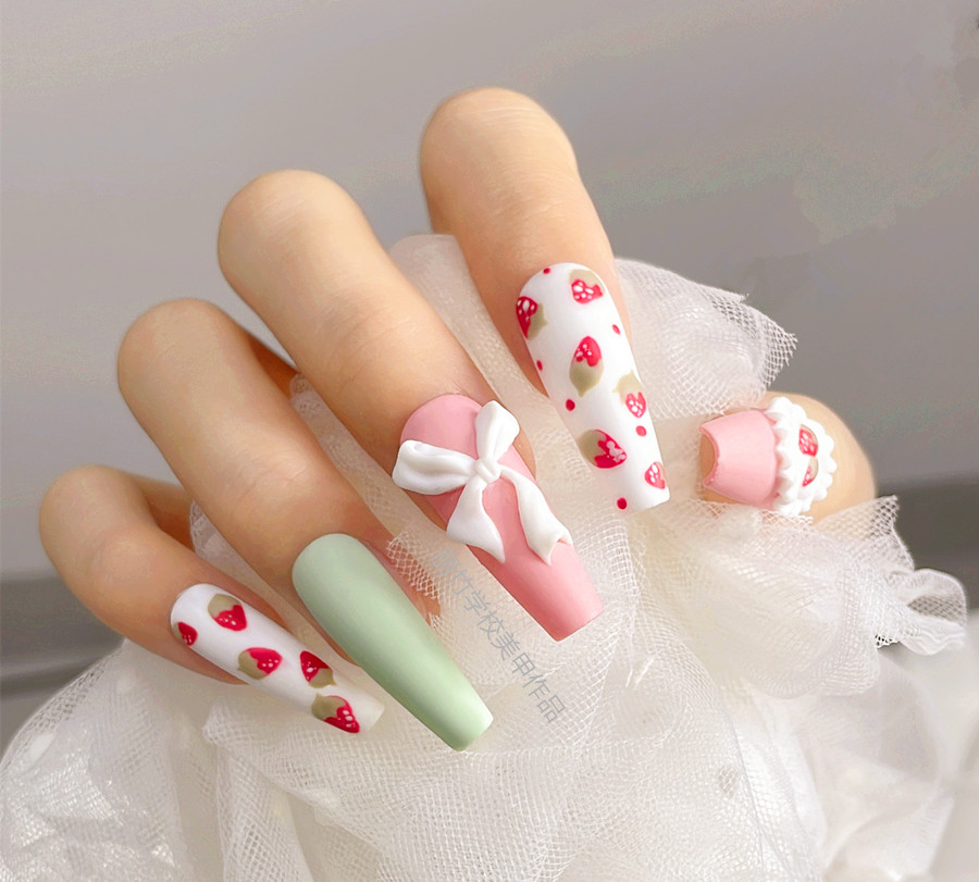 南寧美甲培訓(xùn)哪里比較好?麗竹美甲培訓(xùn)用作品證明:草莓美甲(一)