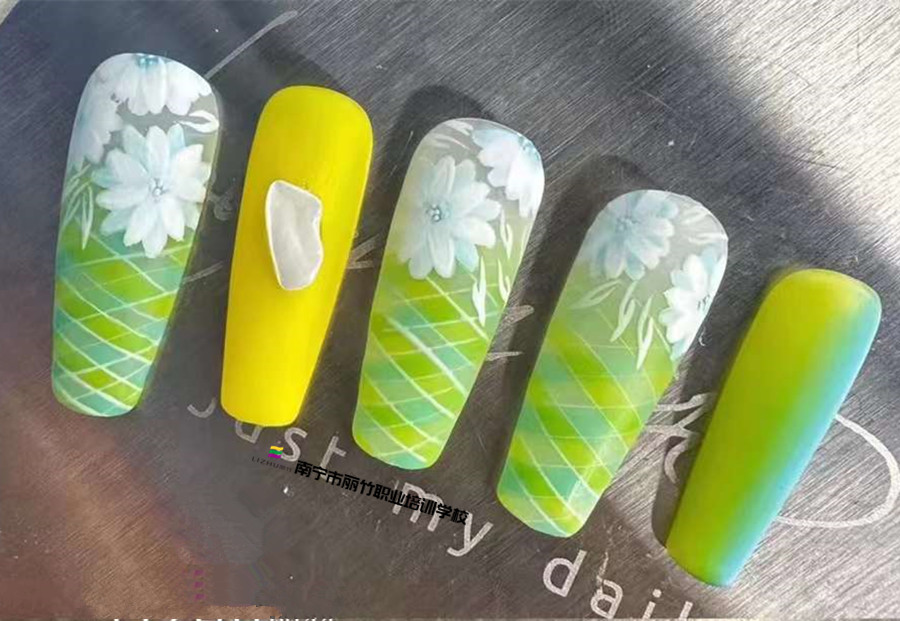 南寧美甲學(xué)習(xí)--格紋雛菊美甲