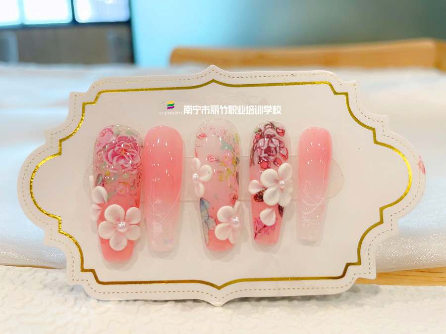 零基礎(chǔ)美甲教學(xué)、南寧培訓(xùn)美甲職業(yè):當(dāng)彩繪碰上雕花,是比出勝負(fù)誰更勝一籌?還是相互陪襯碰撞新的火花?南寧美甲款式造型班的同學(xué)們顯然已經(jīng)用他們的作品給出了答案。