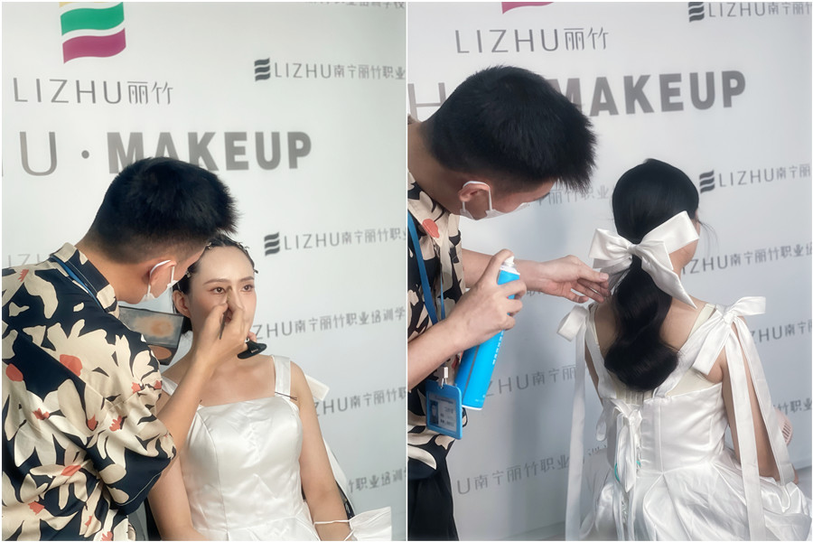 零基礎(chǔ)學(xué)新娘造型、學(xué)化妝在南寧:韓式新娘就以其清新自然,但有自帶氛圍感的妝容造型受到了很多新娘子們的喜愛。在今天南寧化妝培訓(xùn)的課堂上,和我們一起去看看南寧化妝造型學(xué)校-麗竹化妝造型學(xué)校玉老師關(guān)于韓式新娘手法的課堂示范吧!想學(xué)化妝,歡迎到麗竹學(xué)校彩妝專業(yè)參觀試聽!