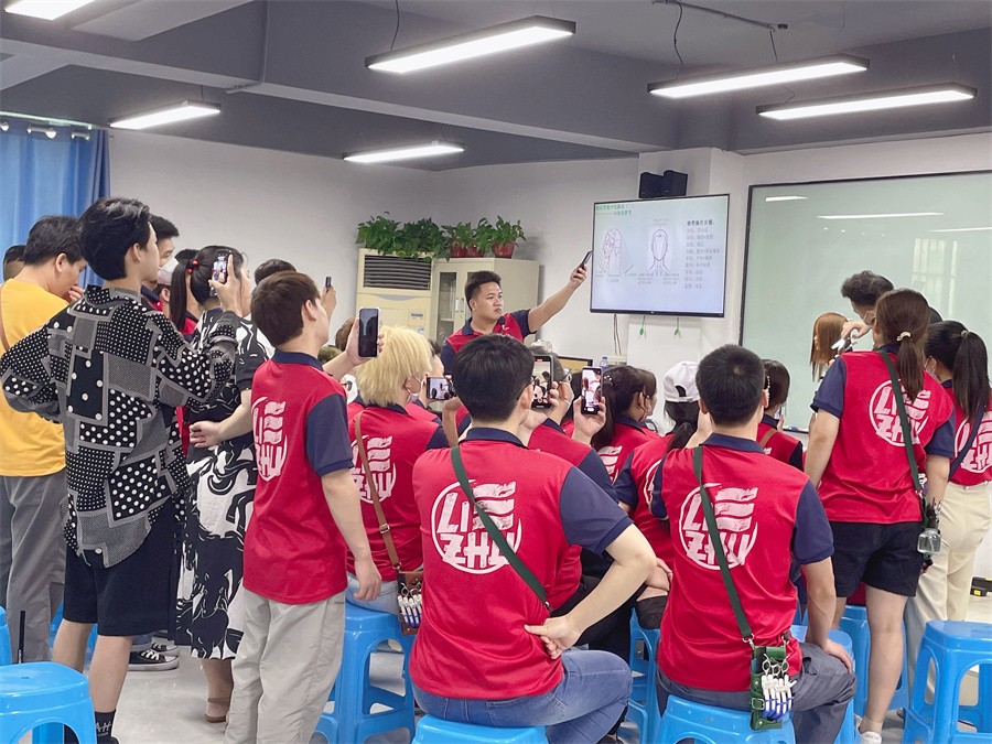 南寧美甲學(xué)校學(xué)員觀看老師示范手法,并及時進(jìn)行錄制