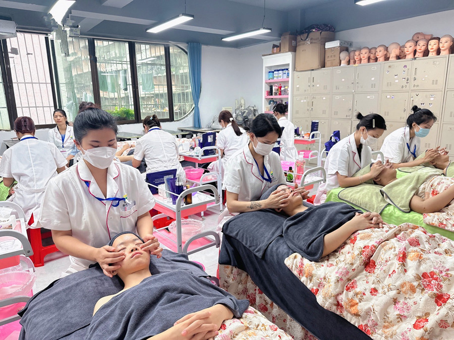 面部護理、南寧學皮膚管理推薦:面部肌膚的管理,是人們?nèi)粘C廊葑o膚項目中的核心。而通過對面部進行點按操作,可以有效改善皮膚狀態(tài),緩解皮膚細紋的生長。現(xiàn)在,不防和我們一起走進南寧皮膚管理培訓(麗竹美容皮膚管理班)的課堂,看看韋老師是如何手把指導同學們練習如何改善面部細紋的手法練習吧!