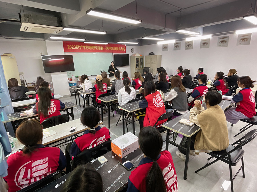 南寧美甲進修、南寧美甲課堂:同學(xué)們期待已久的南寧美甲專業(yè)培訓(xùn)學(xué)校-麗竹學(xué)校年終答謝會-美甲水彩款式專場在11月28日炙熱開課!因場地有限,此次僅有報名前50名的學(xué)員成功獲得了此次美甲進修提升課程的學(xué)習(xí)名額。