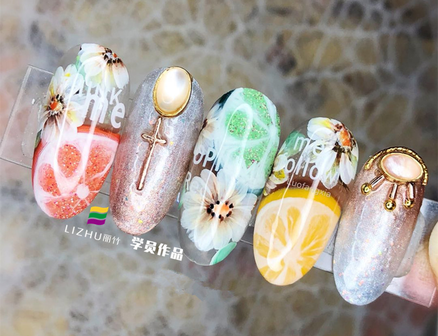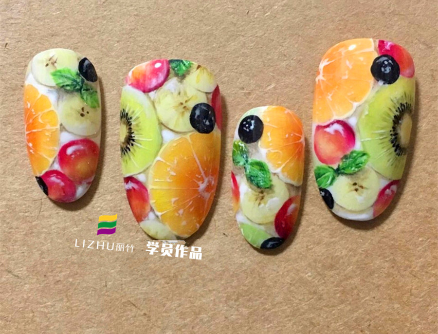 南寧美甲師教學(xué)(麗竹美甲學(xué)校作品):橘子獼猴桃美甲