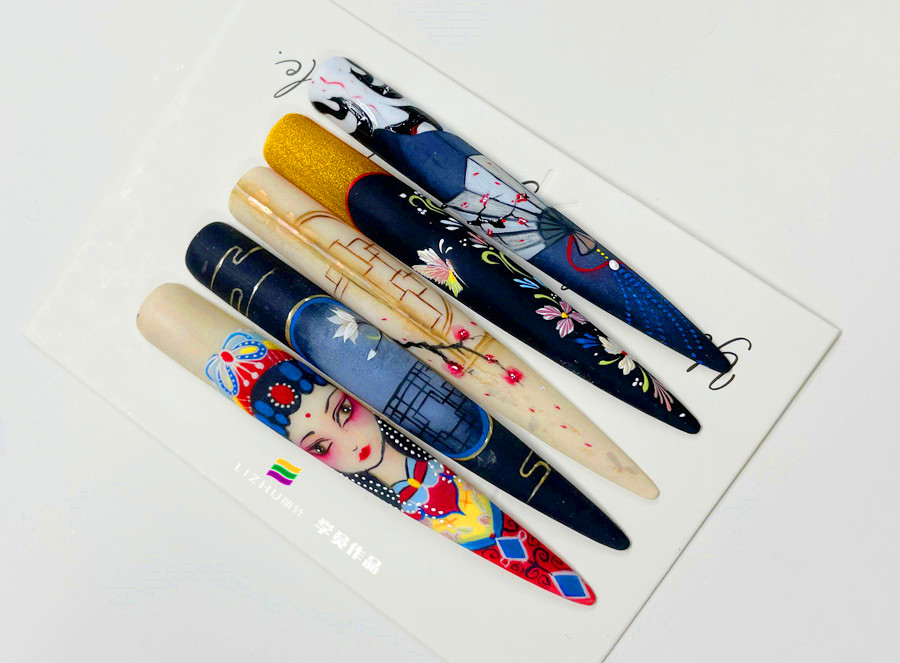 南寧美甲造型培訓(xùn)學(xué)員-彩繪美甲作品---《國(guó)風(fēng)花旦》
