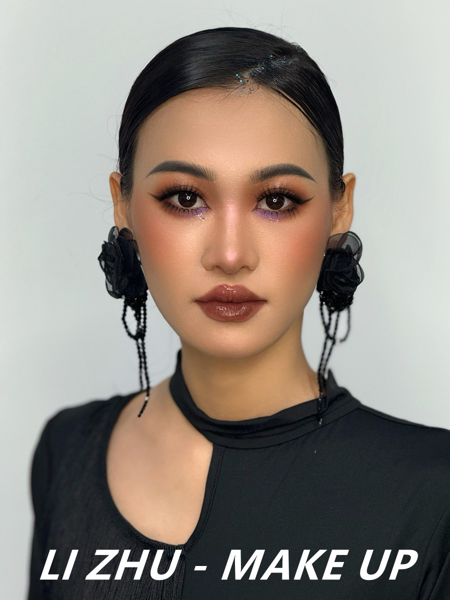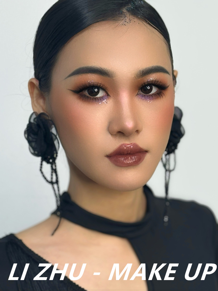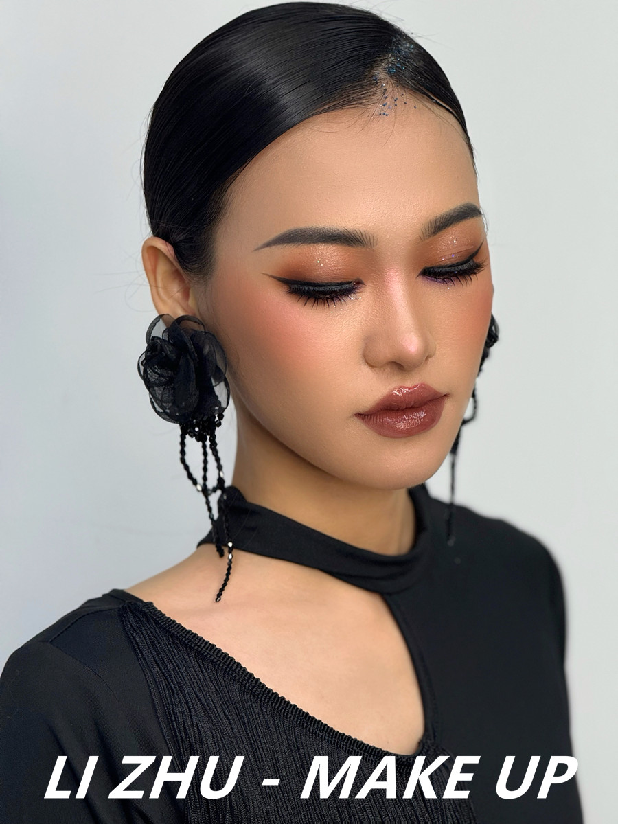 南寧學(xué)美妝、南寧美妝培訓(xùn)排行榜:選擇深一號的粉底進(jìn)行底妝創(chuàng)作,進(jìn)而打造出陽光小麥的健康膚色。細(xì)致描繪的輕度煙熏眼妝,配上時下流行的“豬肝配豆沙”的唇妝,以及自然清秀的眉形設(shè)計,外加網(wǎng)紗黑色花朵耳環(huán)以及黑色禮服裙的裝飾,共同打造出了屬于東方性感美的輕歐美造型。