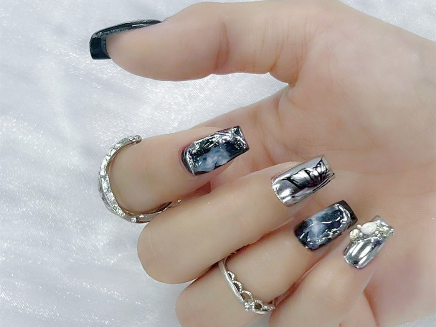 廣西美甲店推薦:在廣西美甲名校-廣西美甲進修培訓(xùn)的教室里,零基礎(chǔ)學(xué)美甲同學(xué)們也嘗試著將ins風(fēng)格的特點榮融入到美甲繪制當中,制作出了黑色系ins風(fēng)美甲。雖然做出的作品還有些不夠精致,但是也能感受到ins風(fēng)獨有的風(fēng)格魅力。
