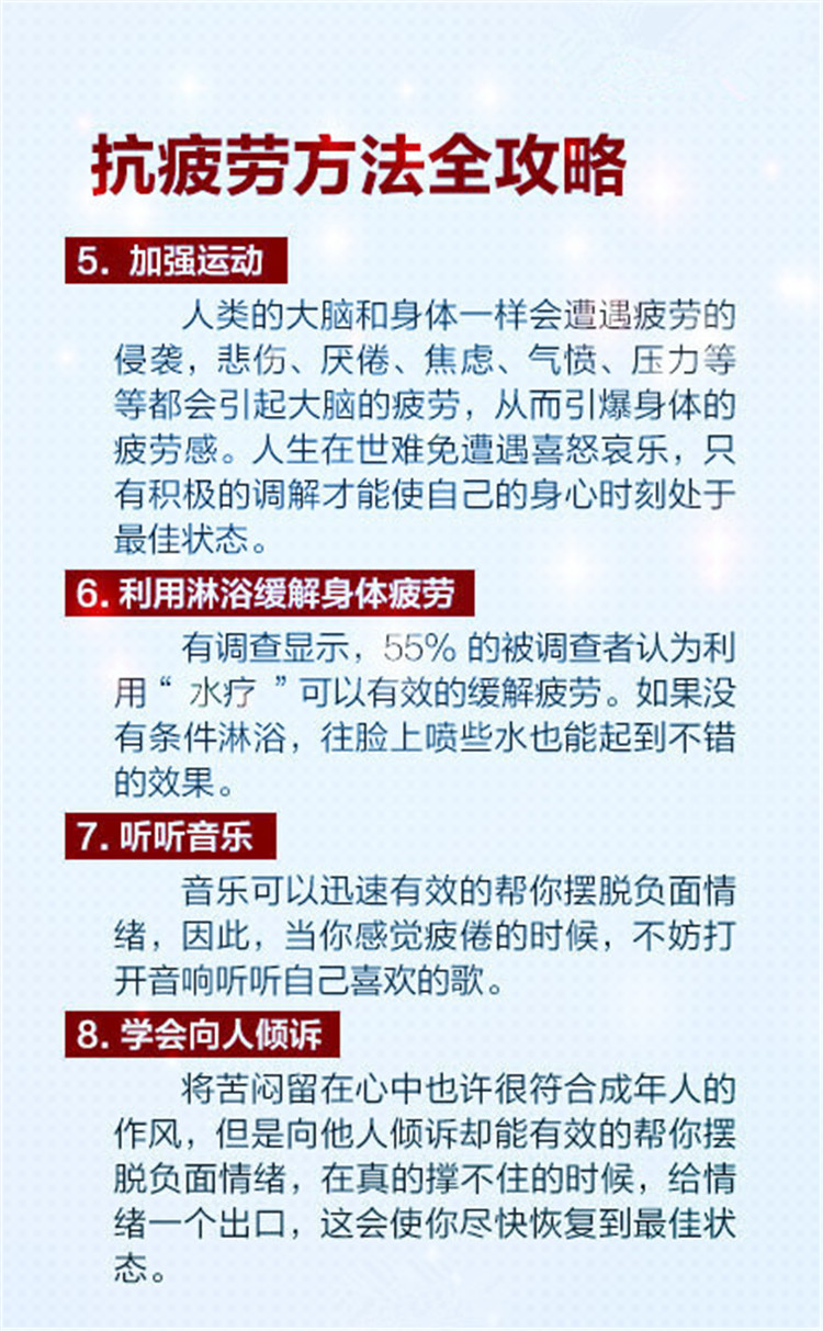 南寧正規(guī)美容學(xué)校:過度疲勞正在侵蝕著大部分人的身體健康,也經(jīng)常會在報(bào)道上看到因?yàn)檫^勞致死的消息。那么,在沒有辦法休息的情況下,有沒有什么方法可以抵抗疲勞呢?