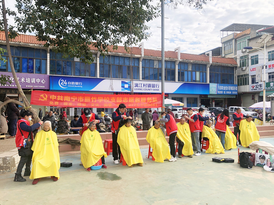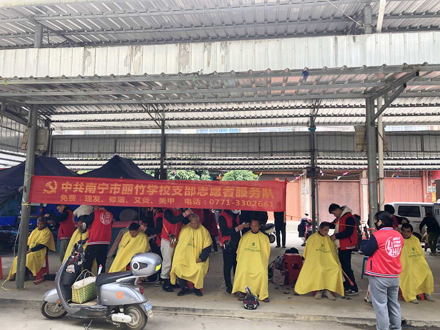南寧美發(fā)社會(huì)實(shí)踐報(bào)告、南寧美發(fā)教學(xué)外出:霜凍籠罩在上空,呼呼刮來(lái)的冷風(fēng),連綿不斷的陰雨讓本就寒冷的氣溫變得更加刺骨難耐。但即便是在這樣的天氣下,南寧美發(fā)職校志愿者服務(wù)隊(duì)的同學(xué)們依舊走訪在各大周邊城鎮(zhèn),為群眾們進(jìn)行免費(fèi)理發(fā)服務(wù)。下面,就請(qǐng)跟著南寧美發(fā)造型培訓(xùn)(麗竹美發(fā)造型培訓(xùn))的鏡頭一起去看看同學(xué)們都去了哪些地方吧!