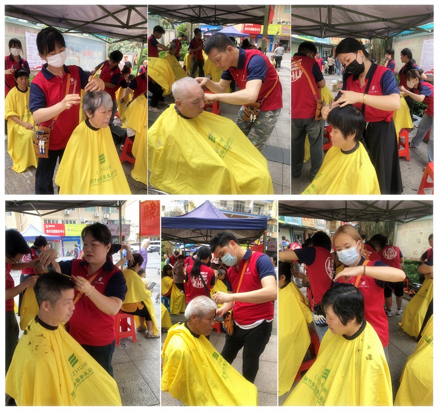 活動從早上9點(diǎn)開始,一直持續(xù)到中午才結(jié)束。隨著氣溫的不斷升高,志愿者們的衣服也早已被汗水浸濕。但即便如此,面對有剪發(fā)需求的居民們,志愿者們“來者不拒”,忍著高溫的煎熬,直到服務(wù)完蕞后一名居民的離開。